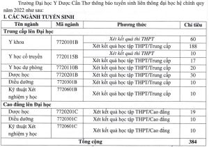 ĐH Y Dược Cần Thơ tuyển sinh Đại học liên thông năm 2022 XEM CHI